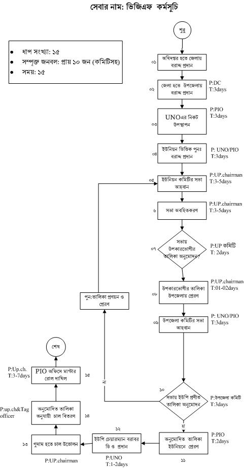ত্রাণ ও পুনর্বাসন শাখা হিসেবে দূযোর্গ কালিন যে কোন সেবা সরকারী নিয়ম তান্ত্রিক ভাবে প্রদান করা হয়। এই সেবা সমূহ কয়েকটি ধাপে প্রদান করা হয়। নিম্নে ছক আকারে দেখানো হলো।